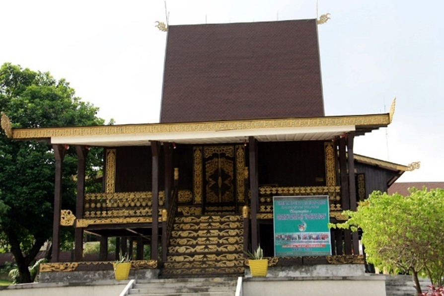 It’s a traditional house of the Banjar people. It has a very tall roof and is built with wood. The house shows the Banjar people's way of life and wisdom.